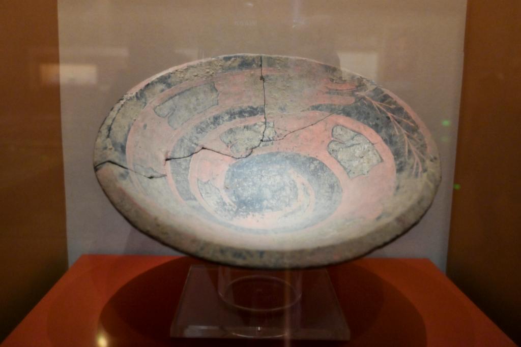 这是在陶寺遗址博物馆展出的蟠龙纹陶盘(2024年11月12日摄)。新华社记者 杨晨光 摄