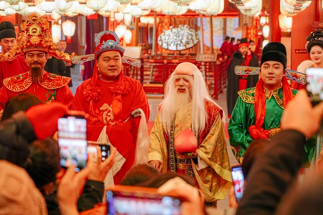 “月老”“财神”为游客送财送喜(央广网发 长安十二时辰主题街区供图)