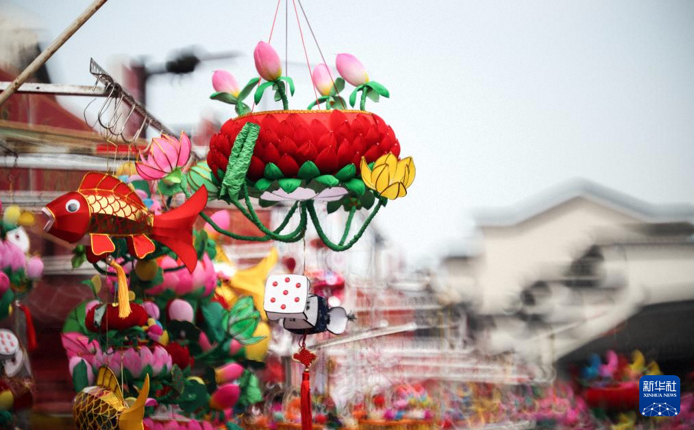 这是1月30日在南京夫子庙花灯集市上拍摄的各式花灯。新华社记者 杨磊 摄