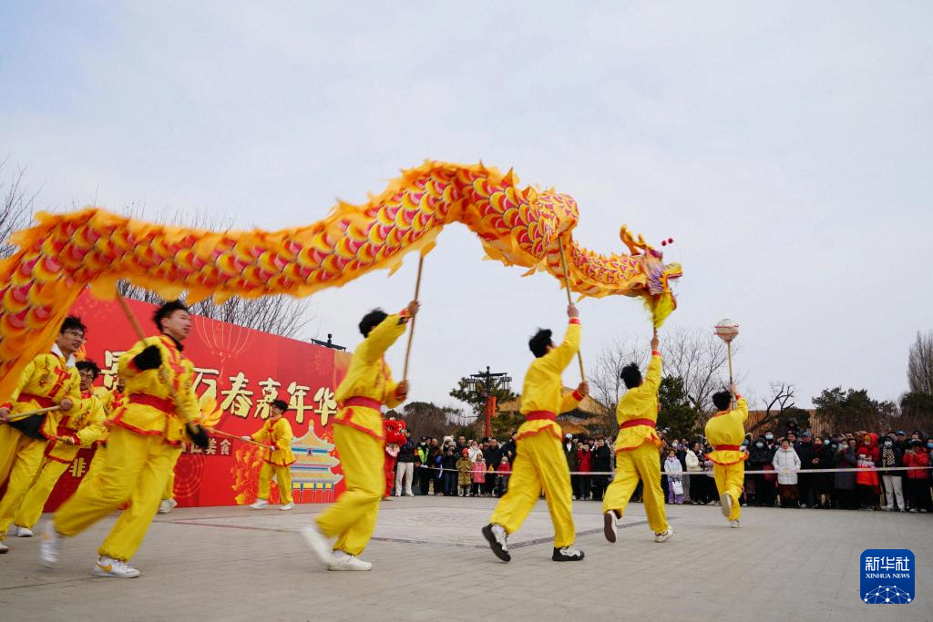 1月30日,游客在北京景山公园欣赏舞龙演出。新华社发(李梦岚 摄)