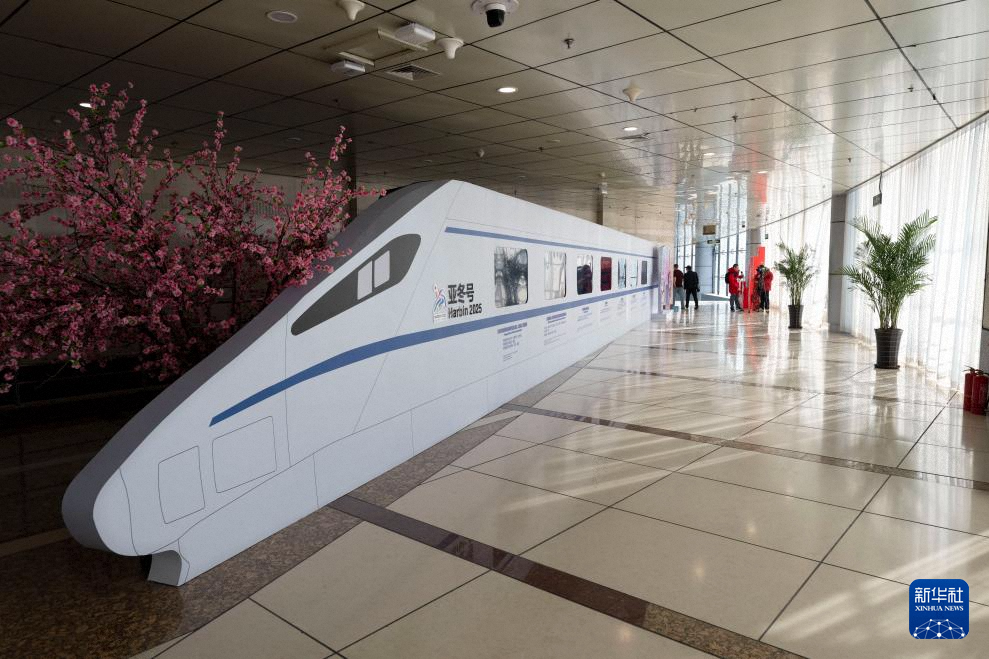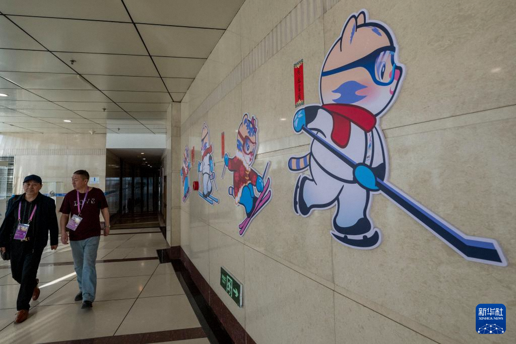 这是1月31日拍摄的主媒体中心内的“亚冬号”展示牌。