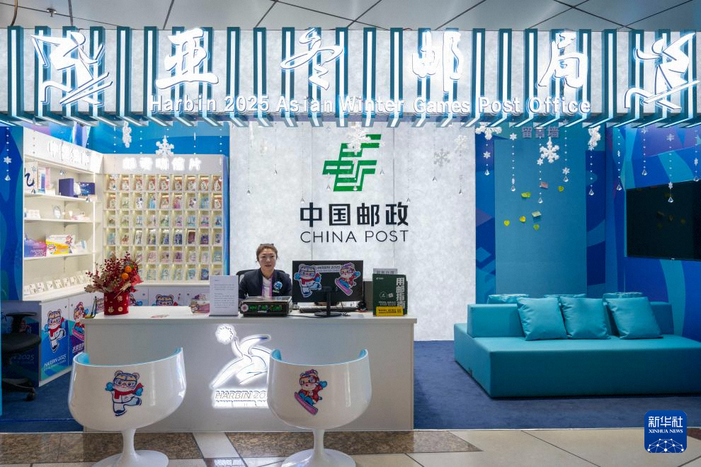 1月31日,工作人员在主媒体中心内的亚冬邮局工作。