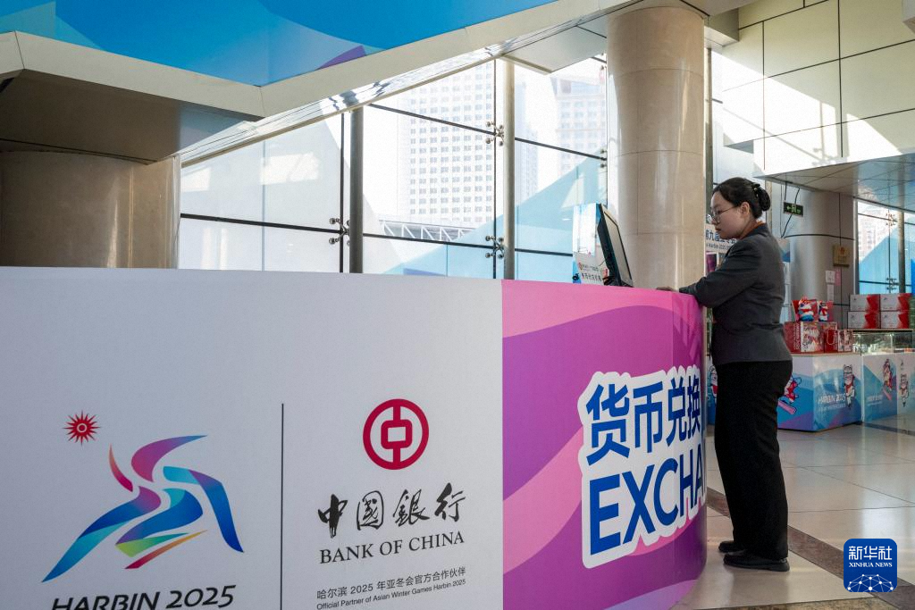 1月31日,在主媒体中心内的货币兑换台,工作人员正在调试设备。