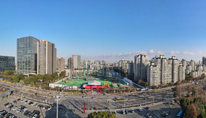 2025年1月9日,上海静安区2025年第一批重大项目集中开工仪式在灵石社区(自仪厂地块)项目现场举行(无人机照片)。新华社记者 方喆 摄