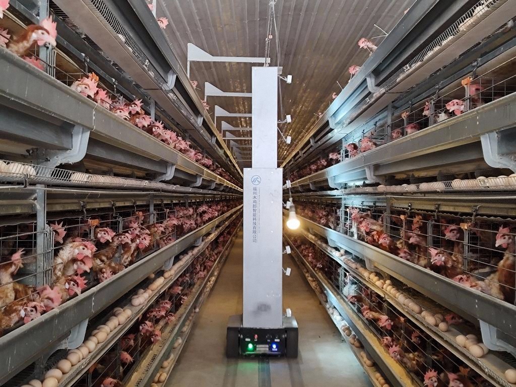 “木鸡郎”机器人在巡视鸡舍。新华社发