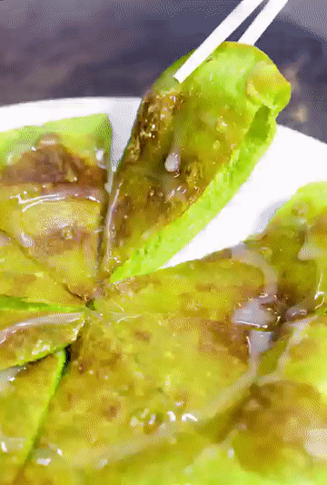 以新鲜斑斓叶榨汁,加入面粉、白糖和鸡蛋制成面糊,煎成薄饼后淋上炼奶,香气浓郁。