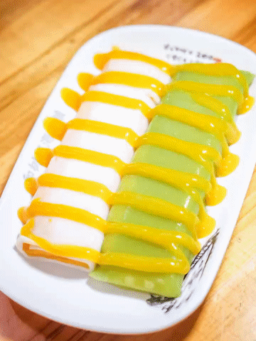 以芒果为馅,搭配椰浆肠粉皮制作而成,口感滑嫩,酸甜适中。