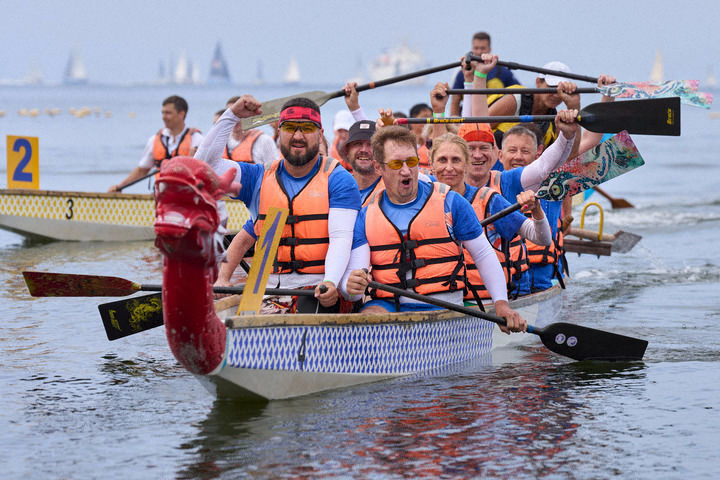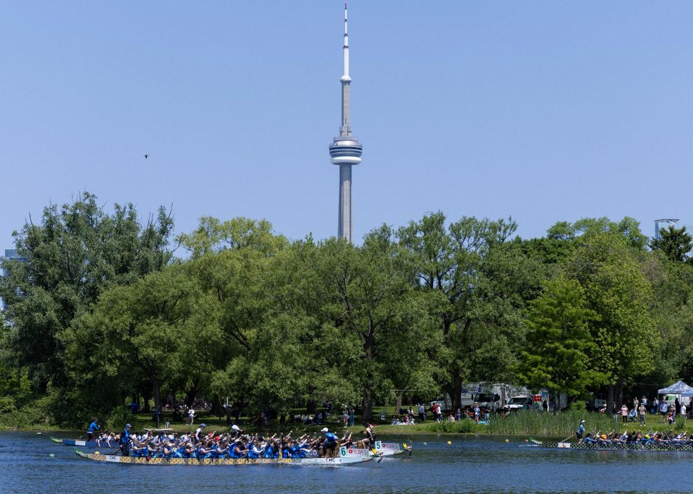 6月14日,在加拿大多伦多,参赛者在2025年国际龙舟节上竞渡。新华社发(邹峥摄)