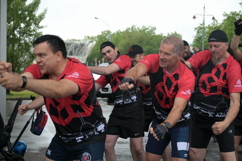 6月15日,在卢森堡雷米希市,参赛队员在第三届卢森堡国际龙舟节比赛前热身准备。新华社发(高懿摄)
