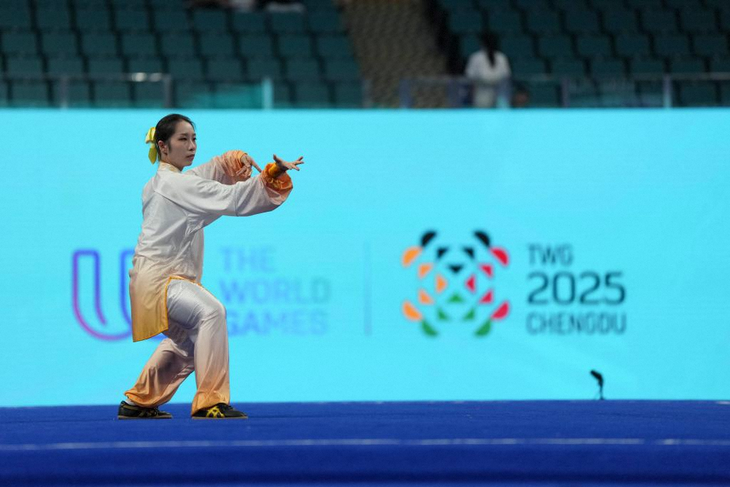 8月8日,中国选手卢卓灵在太极拳比赛中。新华社记者 胥冰洁 摄