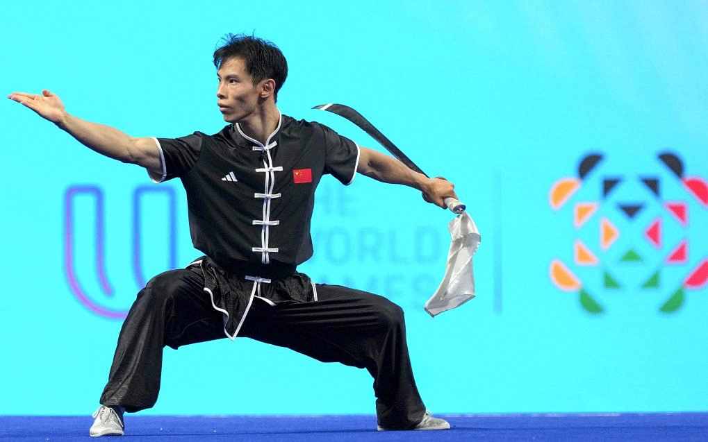 8月9日,中国香港选手杨颂熹在太极剑比赛中。最终,他获得冠军。新华社记者 徐速绘 摄