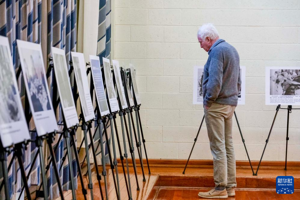 8月15日,在新西兰斯普林菲尔德镇,观众在活动上观看展出的照片。新华社发(严歆韵摄)