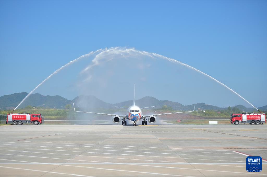 飞机缓缓滑行通过“水门”,两道水柱交织成拱形,水雾在阳光下闪烁。这是航空界的最高礼仪,为这片红土地九十多年来的航空梦洗尘。机场正式通航,将为赣南闽西革命老区680万群众提供更加便捷的出行选择,为区域经济社会发展注入新的动力。
