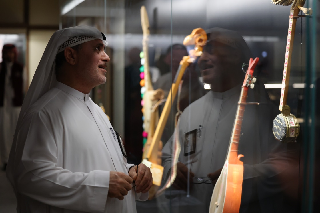 9月28日,在沙特阿拉伯首都利雅得,观众参观“天地同和——中国古代乐器展”。新华社记者 王海洲 摄