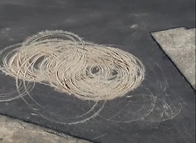 怀着对大字来历的敬畏,陆遥驾车从成都出发,跨越2000多公里,找到了地标文字,眼前的景象令人痛心:“人”和“民”二字之间布满了车辆漂移产生的沟壑,陆遥决定修复这些“伤痕”。他找来了朋友,和朋友的朋友,以及与被破坏地表相同的砾石,耗时多日对受损区域进行了修复。