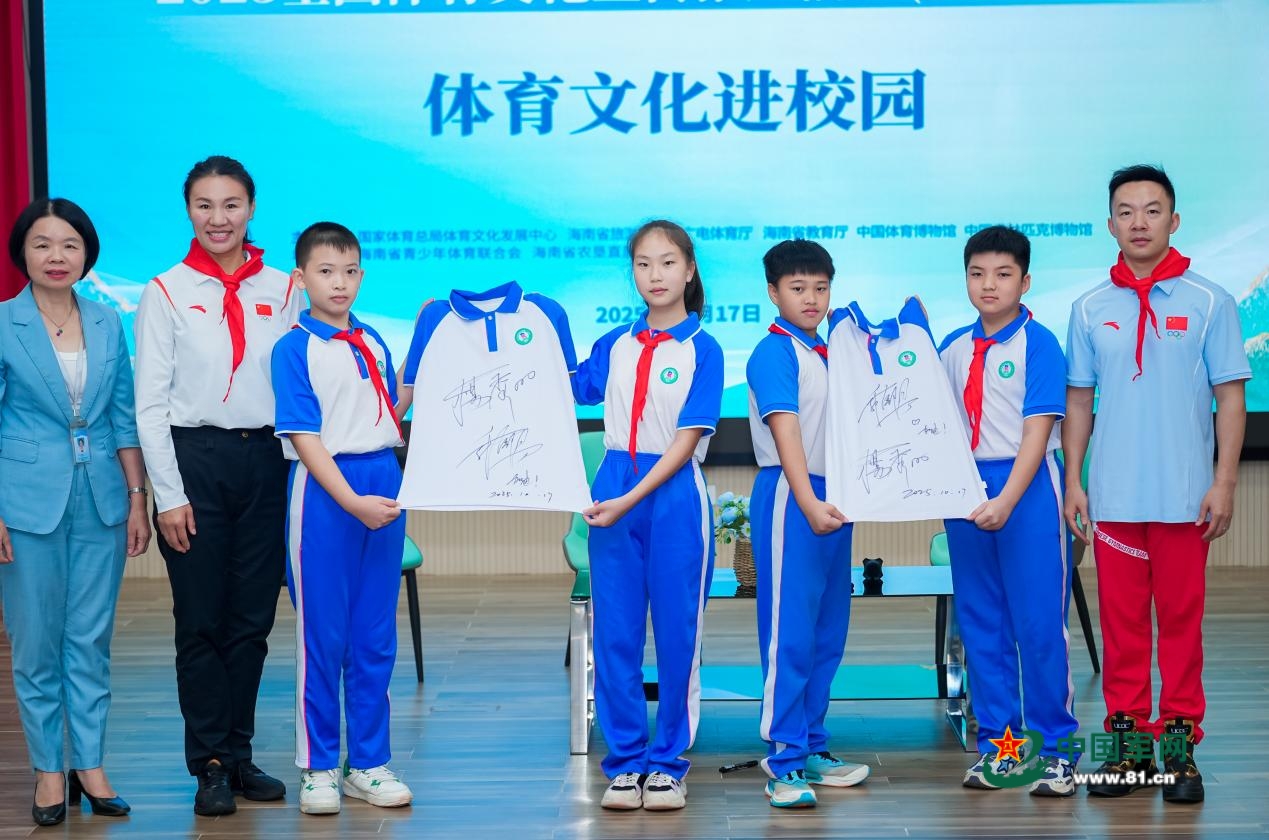 中国军网海南10月19日电(记者仇建辉)10月17日下午,海南省农垦直属第一小学内,椰风伴着掌声,笑脸映着红旗——2025全国体育文化宣传推广活动(海南・海口站)“体育文化进校园”在此温情启幕。2008年北京奥运会女子柔道78公斤级冠军杨秀丽、2012年伦敦奥运会男子体操团体冠军郭伟阳携手入校,将奥运拼搏精神与中华体育文脉注入校园,带来一场沉浸式体育文化盛宴。