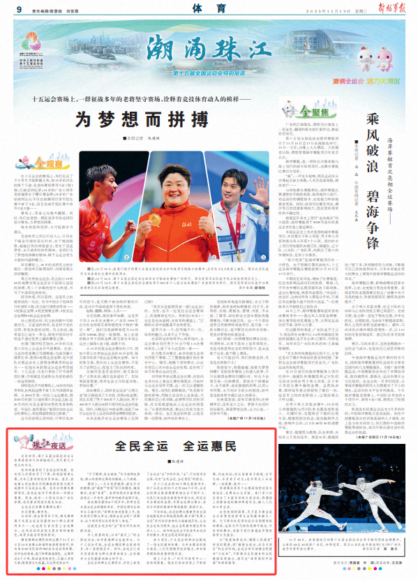 这段时间,第十五届全国运动会正在粤港澳如火如荼地进行,吸引着亿万观众的目光。