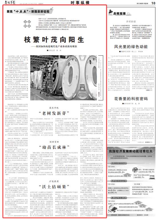 即日起,本版推出“聚焦‘十五五’·新图景新征程”专栏,围绕建设现代化产业体系、加快构建新发展格局、扎实推进乡村全面振兴等战略任务,反映各地区各领域在推动高质量发展中的实践与经验,展望发展前景,汇聚奋进力量。