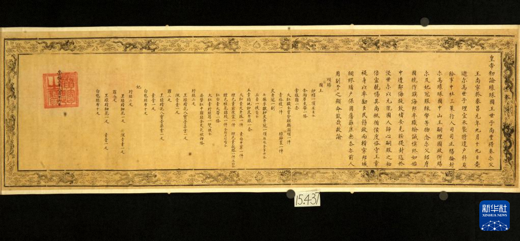 “明谕琉球国王敕”原件(资料照片)。新华社发