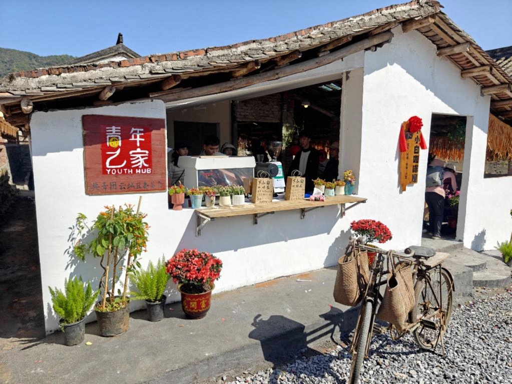 广东云浮的回乡创业青年将村里废弃的猪圈改造成为咖啡馆,竟意外走红成为旅游打卡点。(受访者供图)
