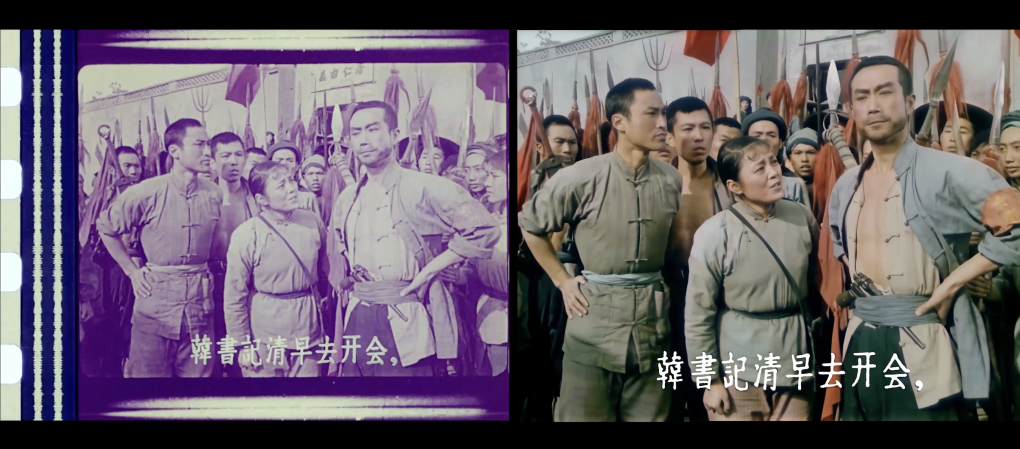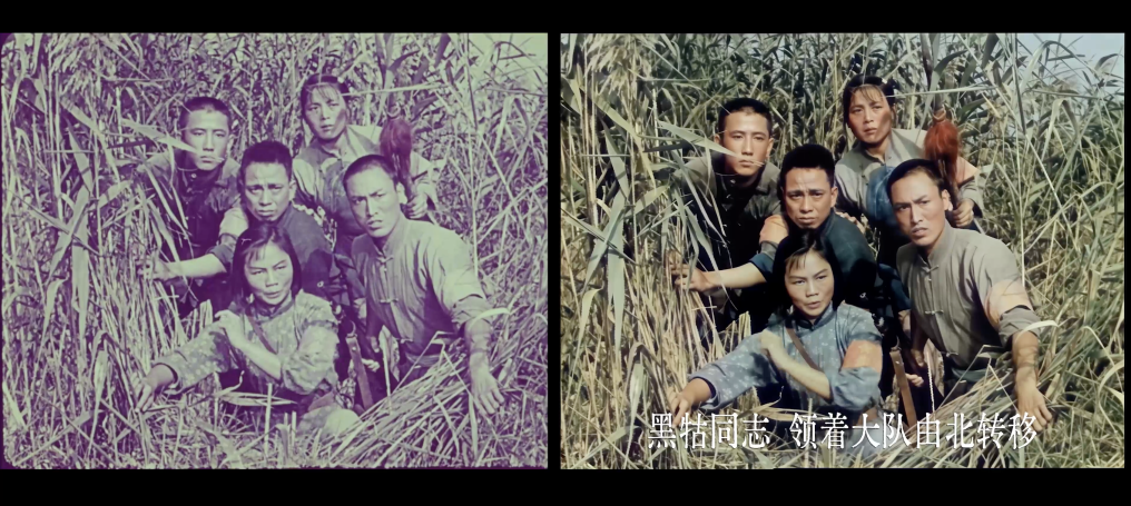 电影《洪湖赤卫队》4K修复前后画面对比。(湖北电影制片厂修复团队供图)