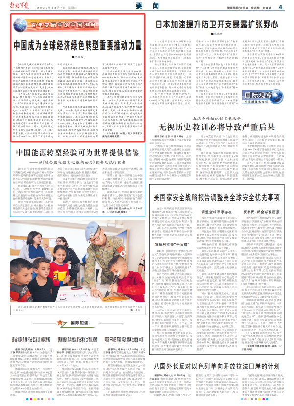 《联合国气候变化框架公约》第三十次缔约方大会(COP30)近日在巴西北部城市贝伦落下帷幕。面对气候变化这一关乎人类命运的重大课题,中国始终以负责任态度展现大国担当。凭借产业规模和供应链优势,中国助力绿色技术成本持续下降,使清洁能源在全球范围内更可及、更实惠,成为全球经济绿色转型的重要推动力量。