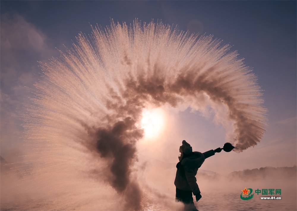 在吉林小雾凇岛,泼水成冰成为游客首选的体验项目。