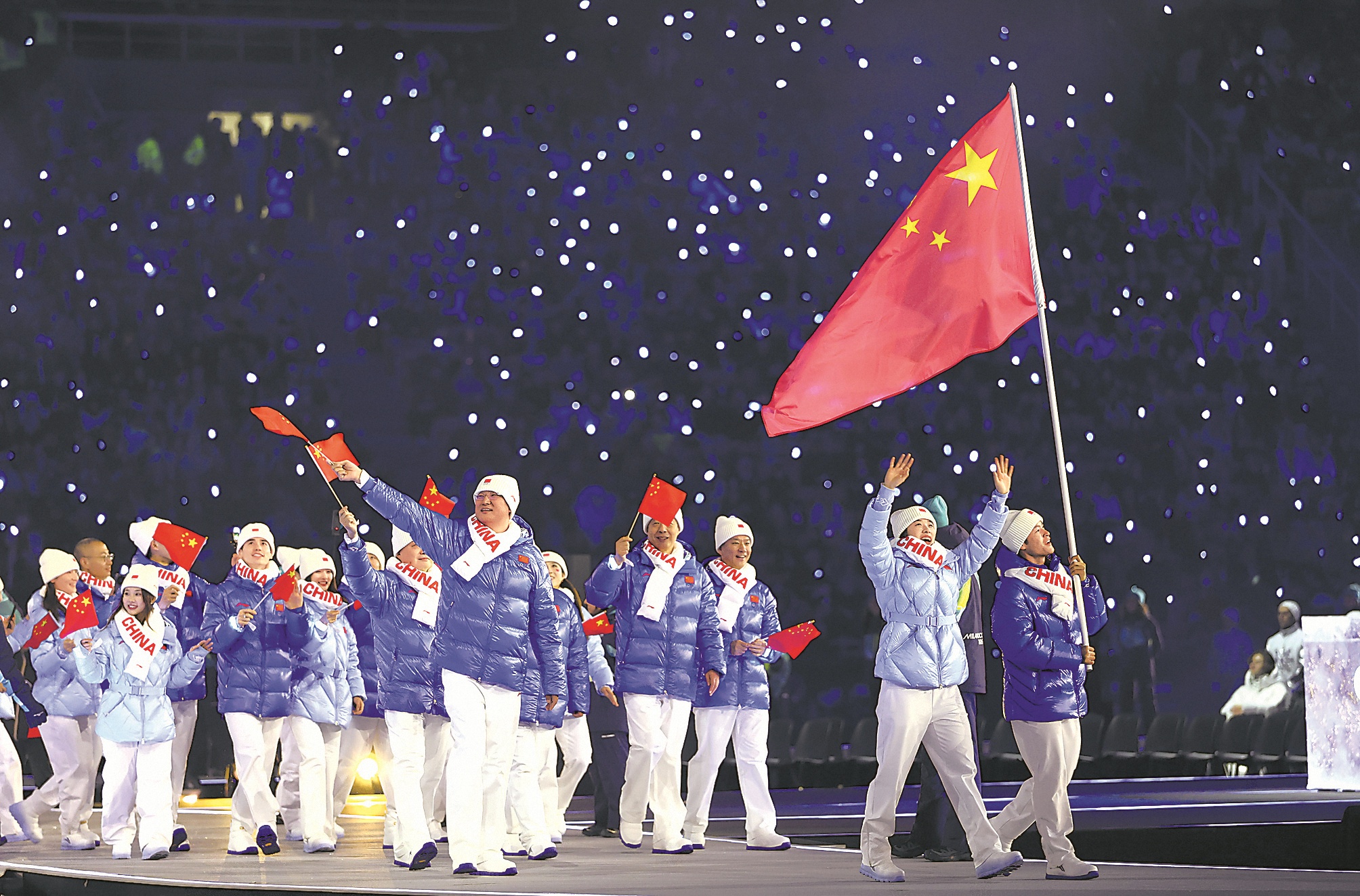 2月6日,中国体育代表团在开幕式上入场。新华社记者 李 明摄