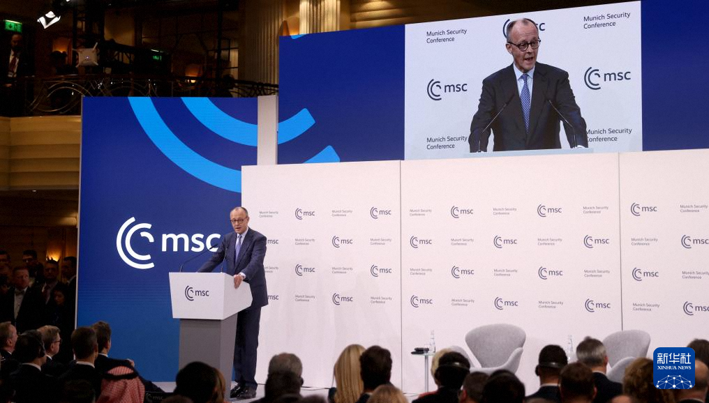 2月13日,在德国慕尼黑,德国总理默茨在第62届慕尼黑安全会议(慕安会)开幕式上致辞。新华社记者 李颖 摄