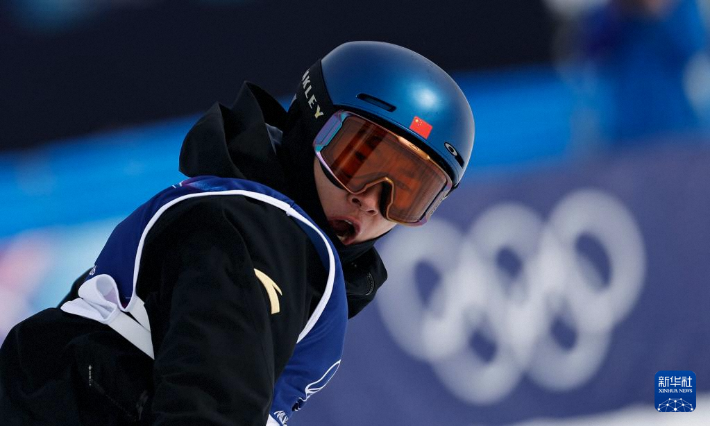 2月18日,中国选手苏翊鸣在比赛中庆祝。新华社记者 王鹏 摄