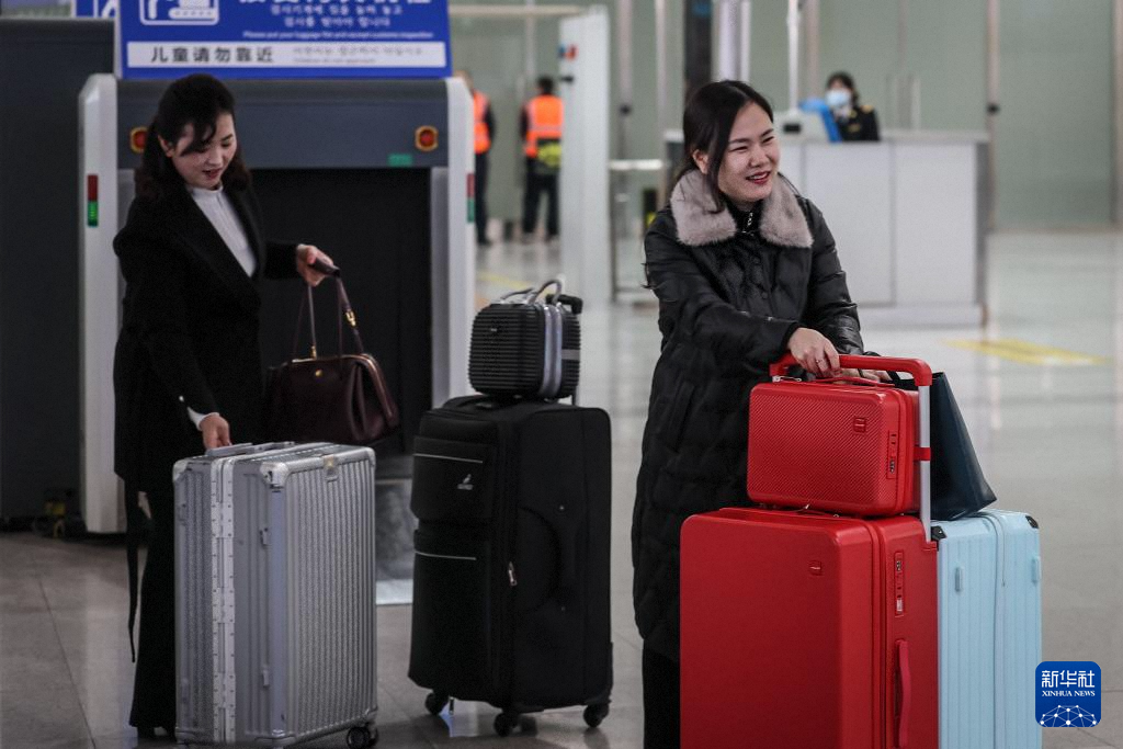 3月12日,朝鲜籍旅客在丹东站通关。新华社记者 潘昱龙 摄