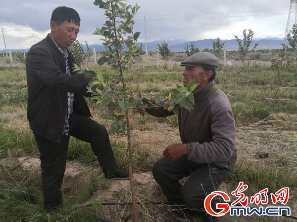 一大早,伊犁州伊宁县武功乡北山坡林果基地里就来了一个人,他在果树间穿梭往返,左看看右看看,十分仔细。