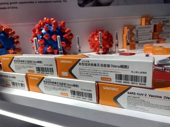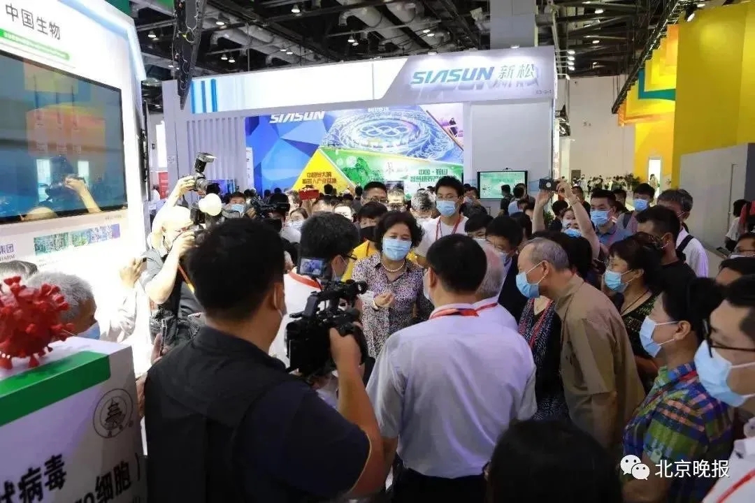2020年国际服贸会期间中国生物展台上的新冠灭活疫苗 图自:国资小新