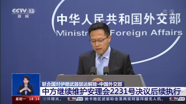 对于联合国对伊朗武器禁运到期一事,中国外交部发言人赵立坚在今天(19日)的例行记者会上也作出了回应。