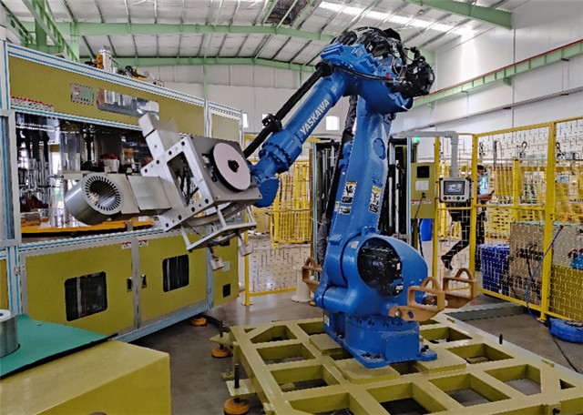 皖南电机还加快布局调整和推进新厂区、新项目建设,进一步增强企业发展的活力。“目前,在厂房里随处可见机械手臂在不间断工作,此外,14台搬运机器人已经正式上岗,可以替代工人从事繁杂的劳动,工作效率提高了4倍。” 宁榕说。