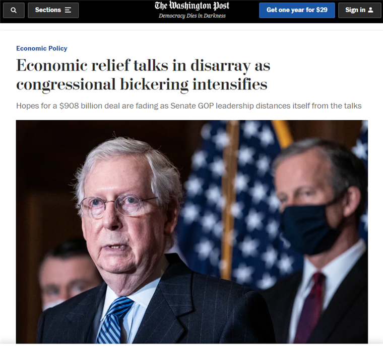 △《华盛顿邮报》报道,国会争吵加剧,纾困法案前途未卜