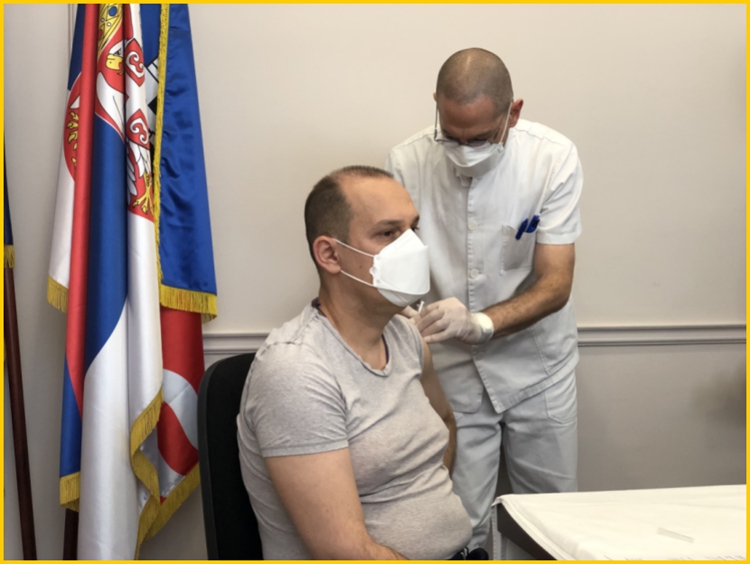 △1月19日,塞尔维亚卫生部长隆查尔成为中国疫苗在塞尔维亚的首位接种者