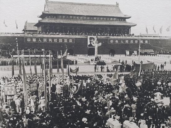 五星红旗伴着《义勇军进行曲》在天安门广场第一次升起时,这首歌的词作者、戏剧家田汉在天安门城楼上观礼,而他的儿子田申,正在长安街上等待接受检阅。