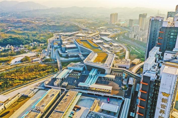 莲塘口岸的落成加强了深港两地的联系往来。图为莲塘口岸俯瞰(1月15日摄)。 深圳特区报记者 刘羽洁 摄