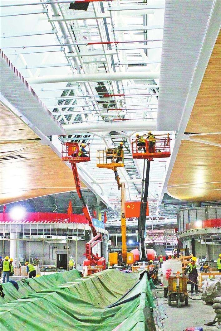 机场卫星厅已完成主体工程,正在高质量开展室内精装修,整体建设进入冲刺阶段。 深圳特区报记者 刘羽洁 通讯员 叶丹 摄