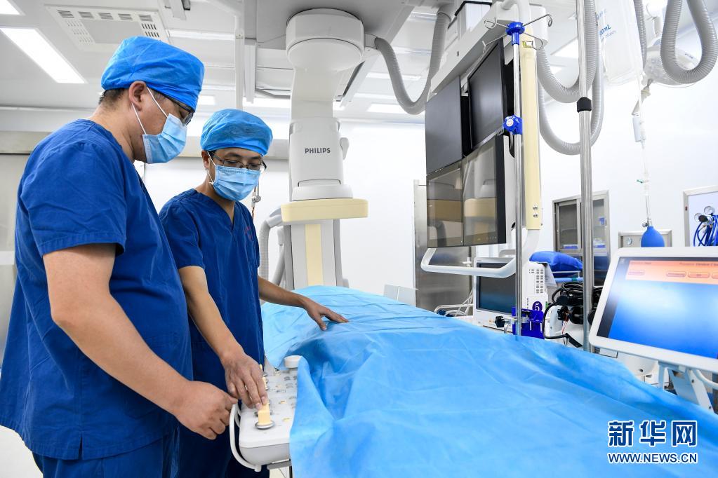 来自福建省泉州市第一医院的医生张克连(右)在宁夏同心县人民医院进行医疗设备教学(2020年9月18日摄)。新华社记者 冯开华 摄