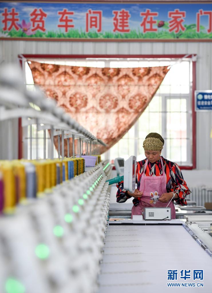 位于宁夏同心县旱天岭村的闽宁协作扶贫车间,村民在机床前忙碌(2019年5月21日摄)。新华社记者 冯开华 摄