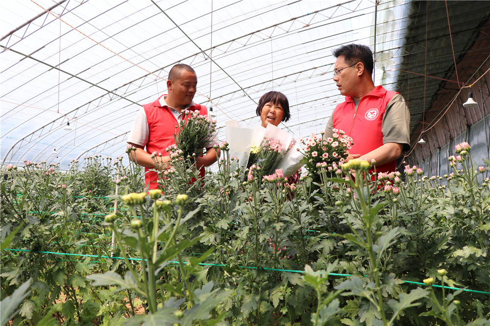 创业路上比学赶帮超,目前,全村一期流转土地400亩的北沟“乡村振兴产业带”,60栋温室大棚拔地而起,鲜花产业吸引青年农民返乡创业、家门口上班。同时,北沟村“两委”还以鲜切花产业为龙头,加快一二三产业融合发展,投资300万元配套建设冷链物流中心、投资500万元建鲜切花、蔬菜交易市场、投资140万元新建玻璃温室育苗展示中心。据悉,通过冷链物流和鲜切花、蔬菜交易市场的建设可以让村集体每年增收100万元收入。