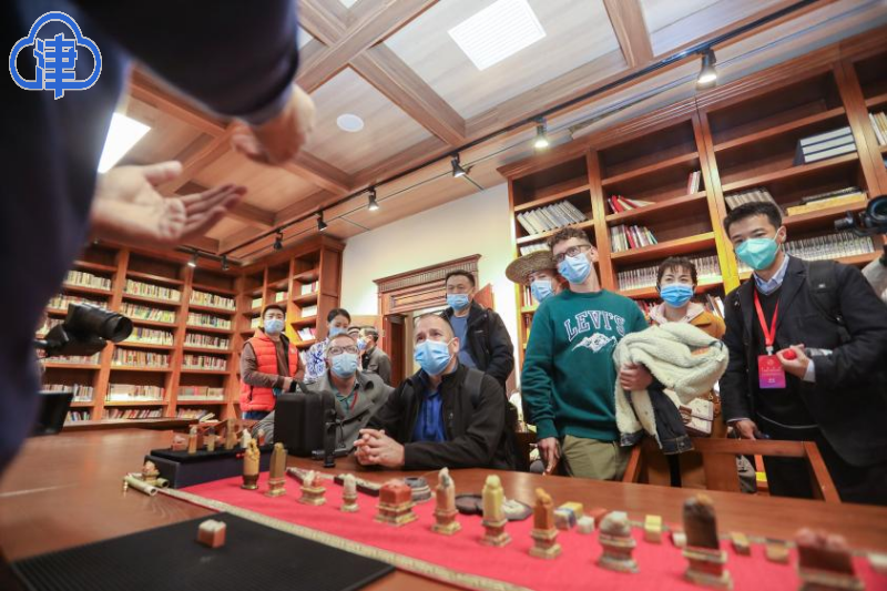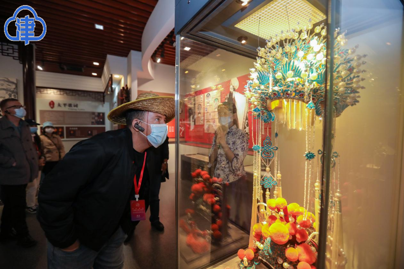 随后,采访团一行人又探访了坐落于和平区民园广场二层的非物质文化遗产展览博物馆。展馆内囊括了48项非物质文化遗产保护项目,狗不理包子、中国古彩戏法、老美华鞋、桂顺斋等都引起了中外友人的凝神观看。