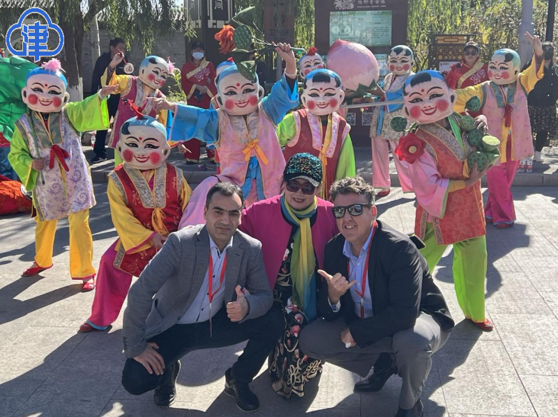 10月22日一早,整装待发的采访团出发前往西青区杨柳青古镇,数十位中外媒体友人欣赏了建党百年剪纸艺术,体验年画制作过程,感受着这里“家家会点染,户户善丹青”的人文气息,体悟着这里传承百年的年画文化、运河文化、民俗文化、大院文化。