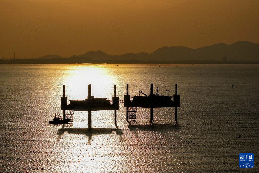 11月10日拍摄的山东省青岛市即墨区金口镇丁字湾海域养殖区(无人机照片)。新华社发(梁孝鹏 摄)