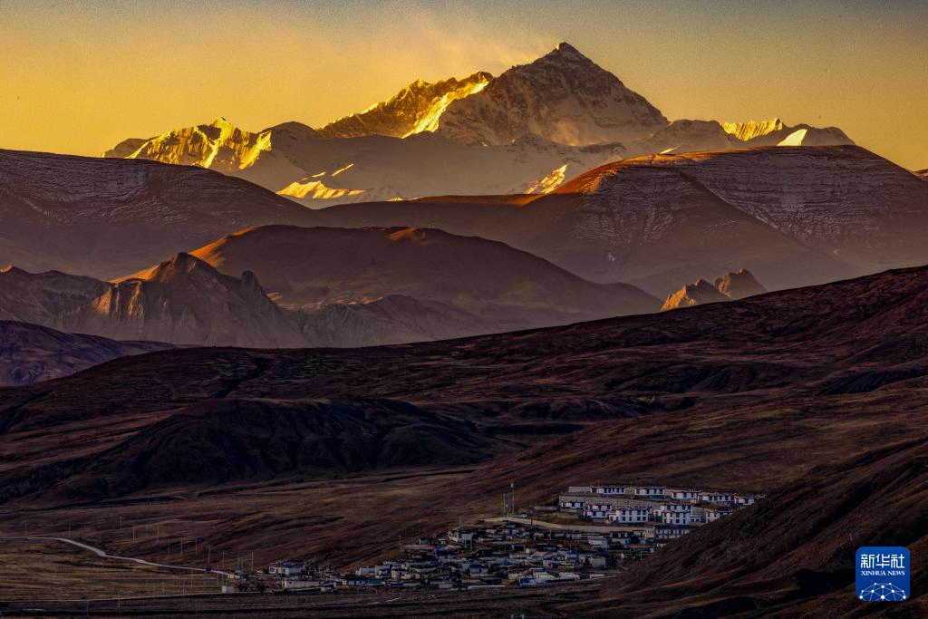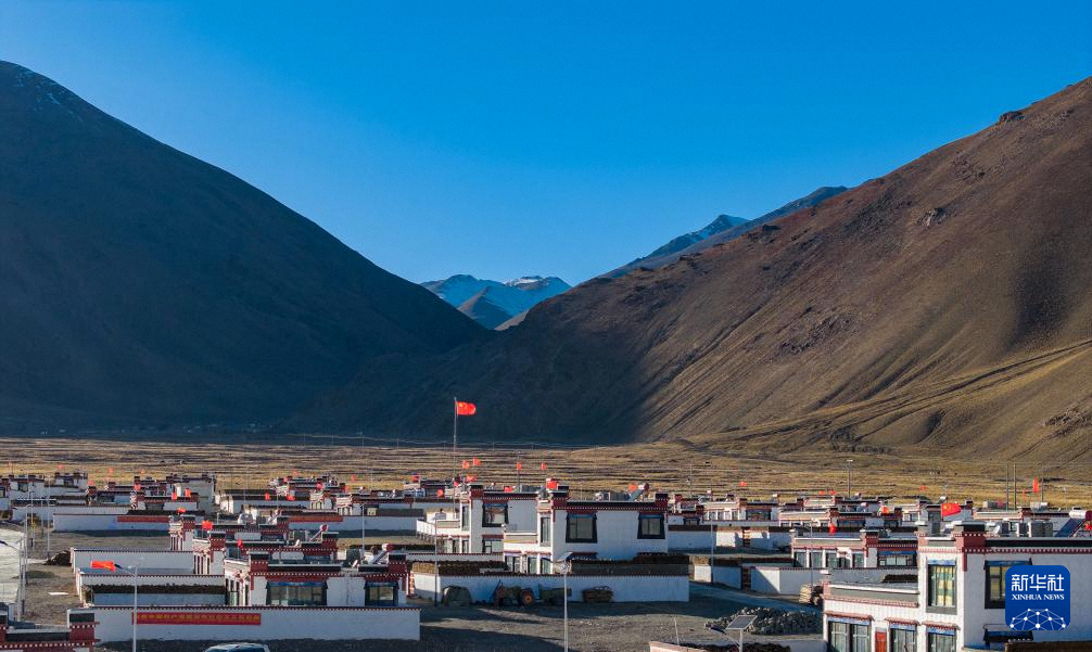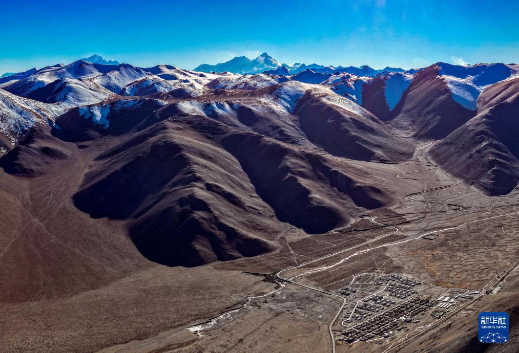 珠穆朗玛峰脚下的西藏定日县措果乡野江村,靠近珠峰方向为建成并交付群众使用的新房(11月12日摄,无人机照片)。