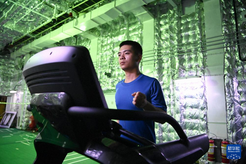 2月11日,中国海警万山舰执法员王弘在休息时间锻炼身体。新华社发(翟一凡摄)