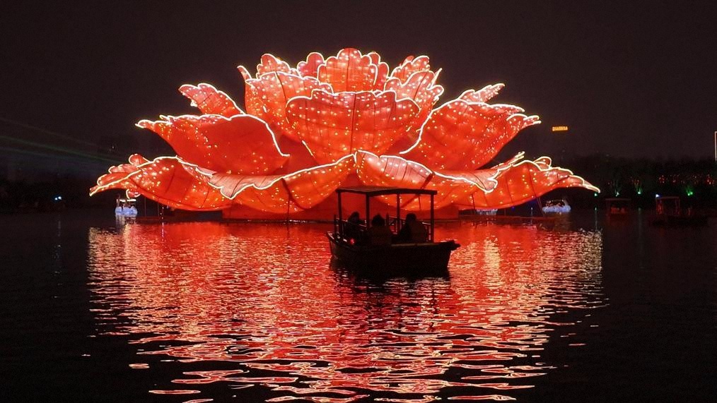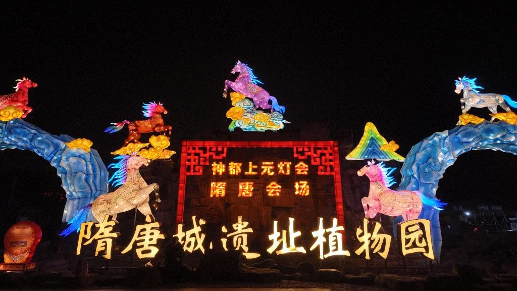 夜色浓,灯火起,花好月圆,正是人间好时节。走进隋唐城遗址植物园灯会现场,以“隋唐花事”为主题的各类牡丹花灯陈列在道路两侧,引来众多游客驻足欣赏、打卡拍照。