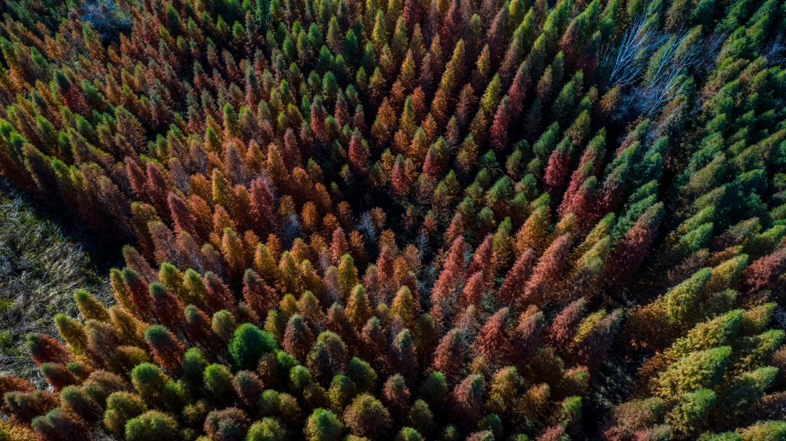 昆明捞鱼河湿地公园一景(12月23日无人机拍摄)。